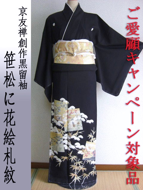 | 商品名 | 黒留袖レンタル26 京友禅黒留袖「笹松に花絵札文」+往復送料込み