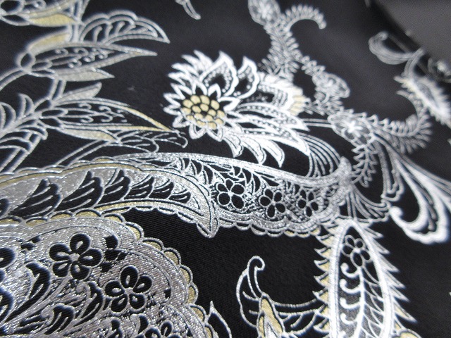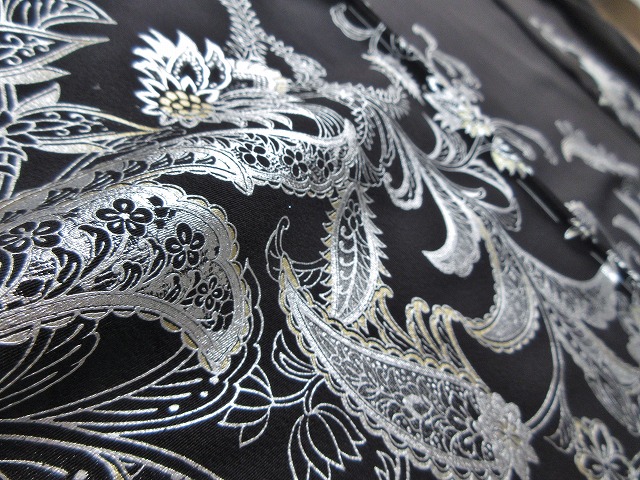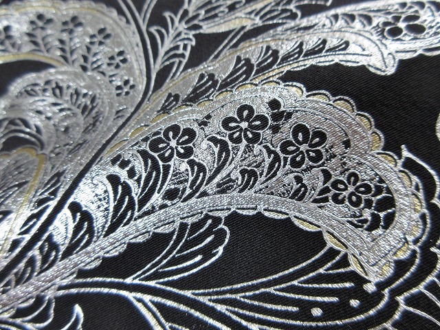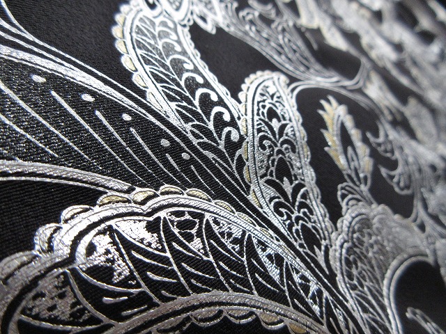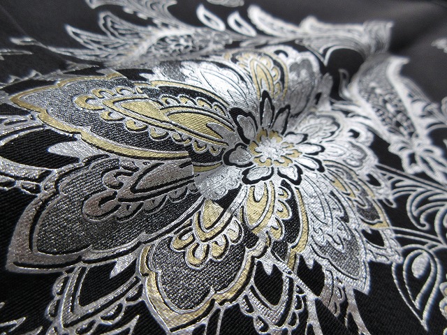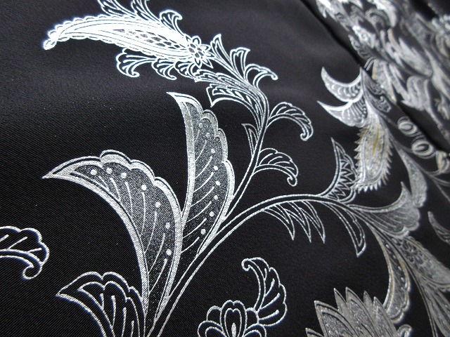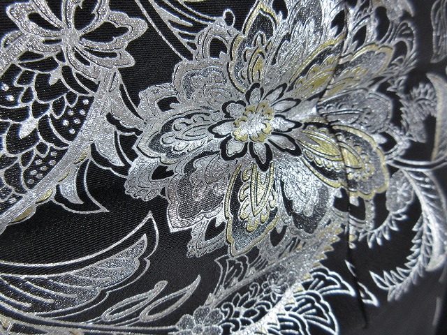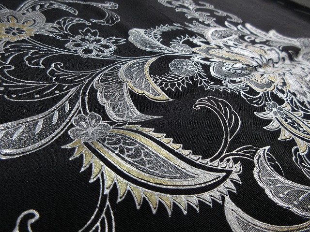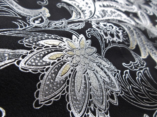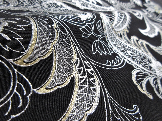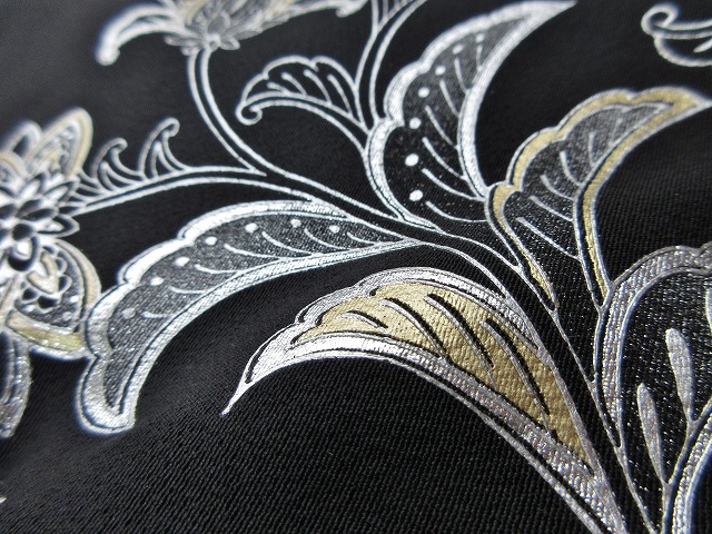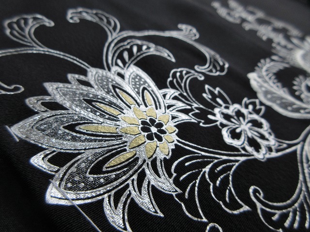 金と銀が巧みに使い分けられ、漆黒の黒地に浮かぶ、華麗で上品でまばゆいほどの唐花文。