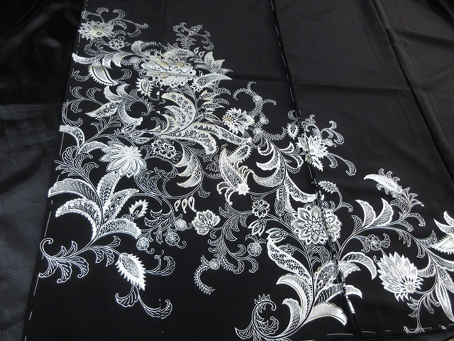 また黒地に対して直接柄が染められますので遠くから見た時の柄の存在感も素晴らしく、金色の帯とを合わせることによりフォーマル感が際立ちます。