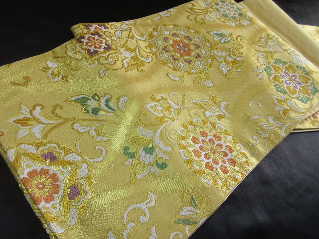 図柄は伝説の花「唐花」や「正倉院文様」が織られた最高級の格を備えた袋帯となります。