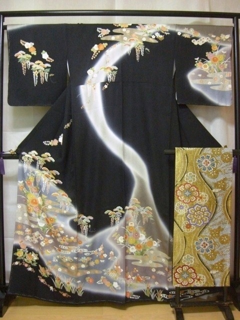 引き締まった黒地の訪問着は着こなしが難しくお考えの方も多いようですが、特に構えることなく、お洋服の感覚でご自由でお好みの御色目をお選びいただけましたらと思います。