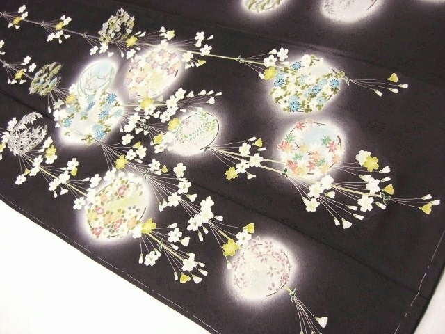 この麗しい訪問着はその紫黒色と呼ばれる地色の作品です。