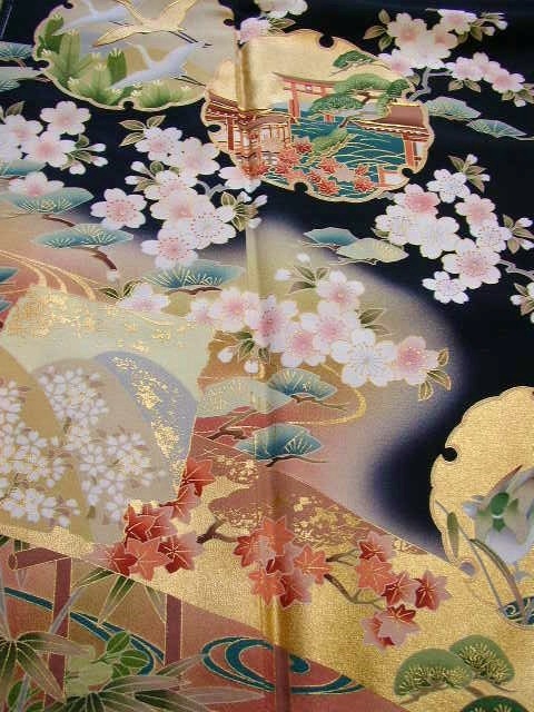 | 商品名 | 黒留袖レンタル8 (京友禅道長ぼかしに雪輪紋桜)+往復送料込み |