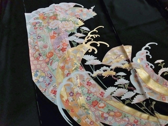 | 商品名 | 黒留袖レンタル108 (京友禅黒留袖「波頭に扇面文」 )+往復送料込み 23,000円ランクアップ袋帯付き