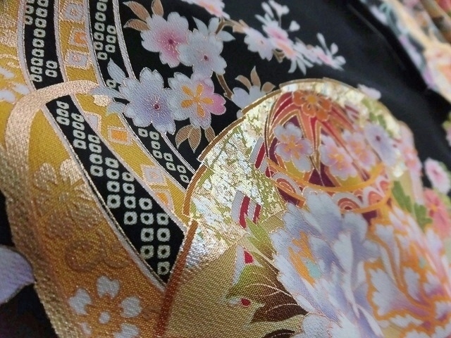 繊細なタッチかつ独特な形状で描かれた二本の波頭文、そして扇面に重ねるようにデザインされた、鼓、手毬、宝尽くしなど日本の伝統ある古典美を大胆かつ丁寧に描ききった大作のご紹介です。