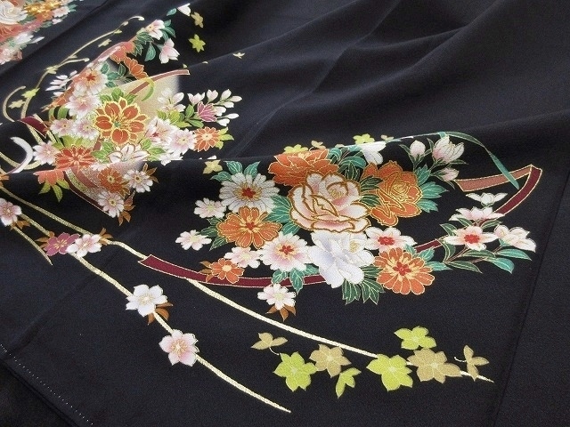 | 商品名 | 黒留袖レンタル132 (京友禅創作黒留袖「菊流れに牡丹文」)+往復送料込み 23,000円ランクアップ袋帯付き |