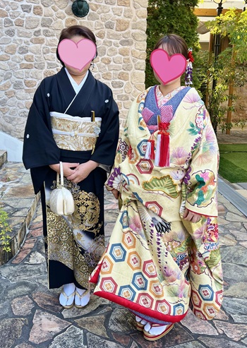 東京都 S様から頂きました画像のご紹介♪ 新郎のお母様には黒留袖レンタル188、新郎のお姉さまには色留袖レンタル10をご利用頂きました。 Lineで何度もS様とやり取りをさせて頂きました。 S様がご不安に思われていること、ご希望されていること、その一つ一つは重要なお立場といいますか貴重なご着用シーンでありますので当然のことですよね。 そういったご不安なお気持ちに少しでも寄り添えますよう、そしてご安心頂けますよう、そのような気持ちでご対応させて頂いておりました。 そしてご着用後に、このような素晴らしい画像をお送り頂け、さらに温かいお言葉まで頂けた嬉しさ・・。 この広い日本で、奇跡的に点と点でお知り合いになれた当店と大切なお客様。 この出会いに心より感謝しています。 この度は本当にありがとうございました。 コメントも頂いております。