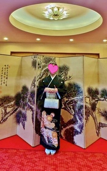 ~改めまして大変素敵なお着物をありがとうございました。 帯のご相談もさせていただき落ち着いた雰囲気の素敵な装いとなりました。 バックなども全てが素敵でした。 お陰様で無事に息子の結婚式を終えることができ、とてもよい一日となりましたこと感謝いたします💐 素敵な黒留袖で写真が撮れて良い思い出となりました。 恥ずかしながら1枚添付させていただきます。 本当にありがとうございました。
