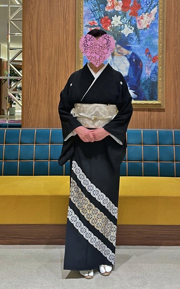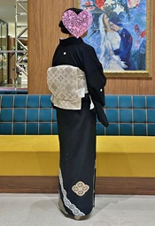 ~改めまして大変素敵なお着物をありがとうございました。 帯のご相談もさせていただき落ち着いた雰囲気の素敵な装いとなりました。 バックなども全てが素敵でした。 お陰様で無事に息子の結婚式を終えることができ、とてもよい一日となりましたこと感謝いたします💐 素敵な黒留袖で写真が撮れて良い思い出となりました。 恥ずかしながら1枚添付させていただきます。 本当にありがとうございました。