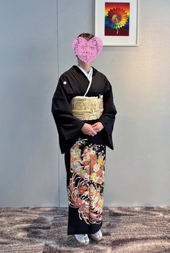 ●この度は素敵な黒留袖をレンタルさせて頂き、ありがとうございました。 帯もとても素敵で、着付けの段階からわくわくしておりました。 晴れの弟の結婚式に、親族揃って素敵な黒留袖を着て列席できたことは、一生の思い出となりました。 写真や動画を見返すたびに嬉しく、晴れやかな気持ちになっております。 暑い日と肌寒い日が繰り返しておりますが、どうぞご自愛ください。 本当にありがとうございました。