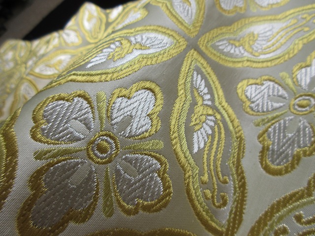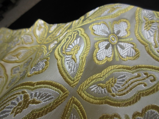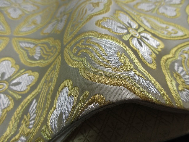 知的でハイセンスなシルバーを基調に、金糸と白系のみで織られた京都西陣織り、会心の作品です。