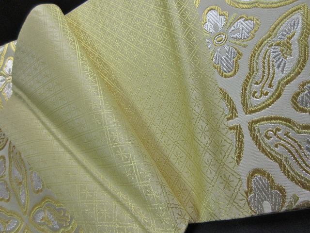 | 素材 | 袋帯・・・絹100% 金属糸以外 長さ約4.4メートル 京都西陣謹製 西陣織物工業組合認証品 帯揚げ、帯締め・・・絹100% |